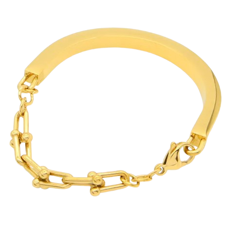 El brazalete Telma es el accesorio perfecto para complementar cualquier atuendo. Hecho con un elegante diseño único con sus eslabones, este brazalete es la combinación perfecta de estilo y sofisticación. Atrae todas las miradas gracias a su elegancia y añade un toque de lujo a tus looks.